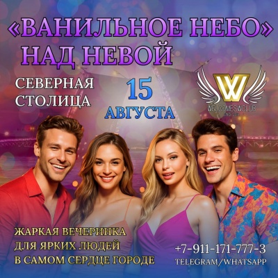 15 АВГУСТА "ВАНИЛЬНОЕ НЕБО" над Невой — пройдет самая яркая и незабываемая вечеринка уходящего лета в сердце города вместе с легендарным клубом "WELCOME"